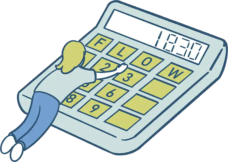 お客様の給与計算をFLOWが代行します。初期設定費用と毎月の費用がかかりますが、お客様の時間をより短縮化することが実現できます。